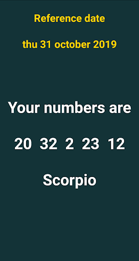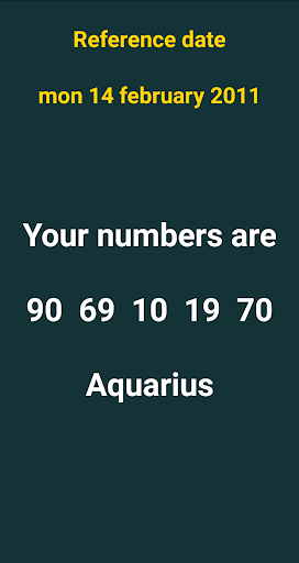 This app generates numbers from a date: the current date, a birthday, an event, etc. (touch and hold date to change); you can generate your own numbers to play lottery; touch and hold numbers to save to clipboard.
