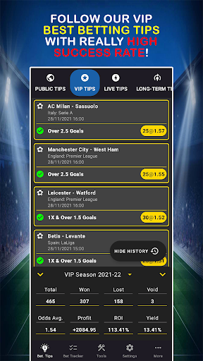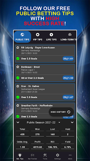 betFella provides you with the best betting tips and predictions from our top tipsters in a daily basis. Stay tuned with the 'Betting Tips' section of our app and be the first to get our best tips with the greatest possible investment value!