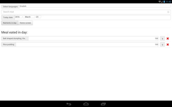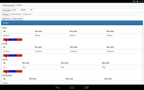 This application will help you check quality of your food every day, check these meal with the standard. List nutrients of foods, find food that contain nutrients.