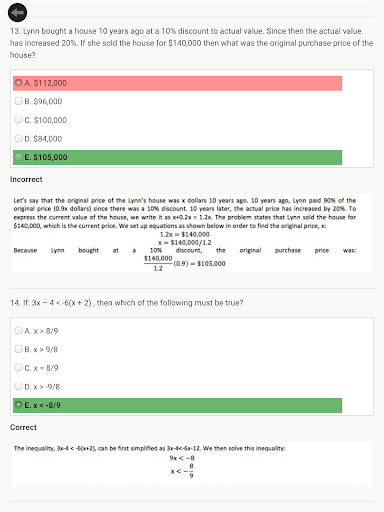 → Learn from detailed answer explanations and see how you stack with the rest of the competition with our score analysis