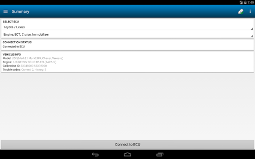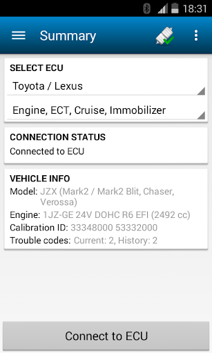 - Read vehicle info: model code, engine name, engine displacement, VIN code and calibration id