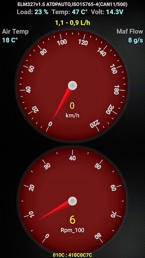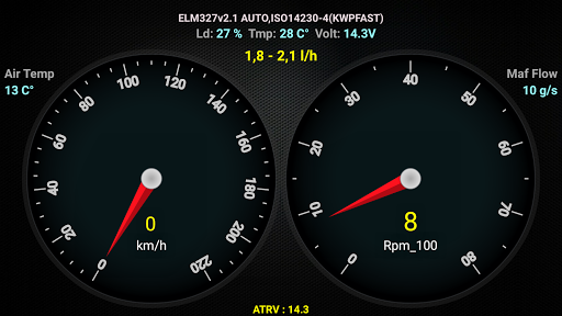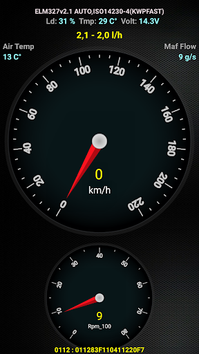 This software will communicate with your ELM 327 OBD II Bluetooth or Wifi adapter. The ELM 327 Bluetooth / Wifi Adapter can connect directly to your Vehicles 16 Pin OBD II diagnostic connector. You can get real time data like rpm, speed, engine temp, fuel consumption,engine load, battery voltage.. For calculating true fuel consumption, you could select engine type from settings page. Also you can send your own commands from terminal and see the results. You can reset software with reset button. Tap the screen to full screen and vice versa. There are 5 different face colors.(Black ,Blue, Red, Green, Yellow). To change face color, select from settings and tab screen.