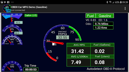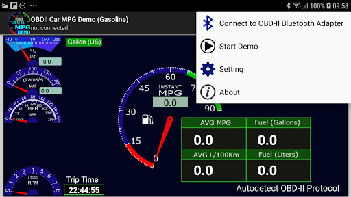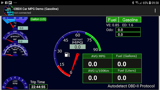 * The DEMO version shows example and detects that if your car supports MAF pid or MAP pid, or you can not use this app for your car.