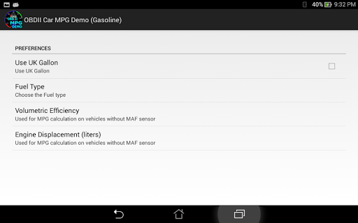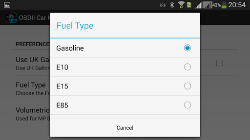 Set the Fuel type as Gasoline or Exx , set Gallon US or Gallon UK