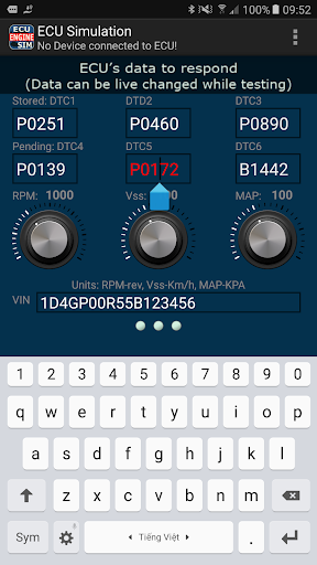 After starting the application, the starting screen appears and you only need to tap the button "Start simulating the ECU" to start the ECU simulation process, the data screen appears