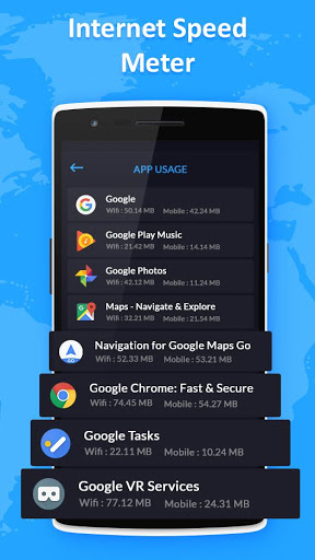 Internet Speed Meter /Data Usage Monitor(speed test & monitor internet) is check your wifi, 3G, 4G, and Mobile data used by per app.