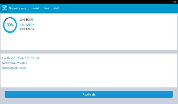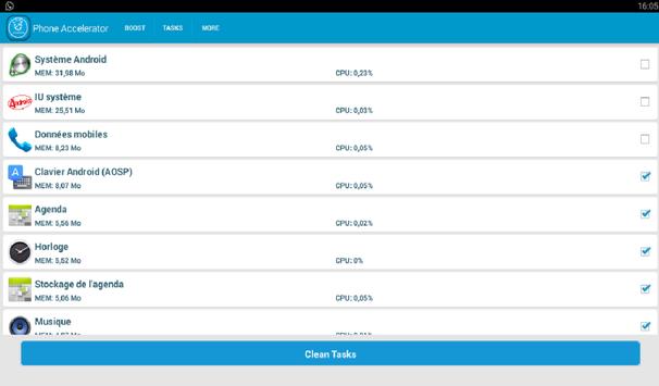 Your phone is too long to load applications? It takes time to respond? Phone Accelerator is your ideal solution, with a simple click your RAM is cleared of unnecessary programs, and your phone run faster ..