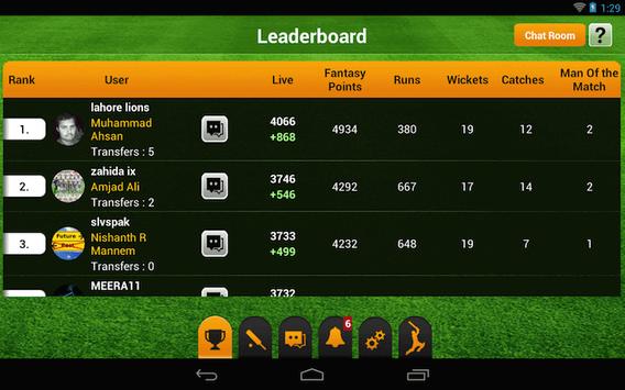 Get your score updated instantly with live leaderboard. Chat among all fantasy players inside league.