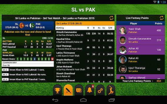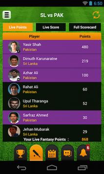 - Live score and Live Fantasy Points: