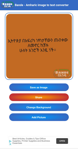 Bande means instantly in Amharic. Our app instantly scans and recognise any letters in Amharic or any language from an image.