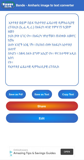 Bande is the best Text Scanner compatible with Amharic Alphabet!