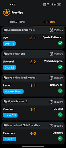 Genius Master Tips is an Android app that provides its users with betting tips for various sports events. The app offers several categories of tips, including free odds, VIP premium odds, correct score predictions, half-time/full-time predictions, and tips on draws. The app also offers a special category of tips called Gold Tips, which are carefully selected by the app's experts and are considered to have a higher likelihood of success. With Genius Master Tips, users can get the latest and most accurate tips to help them make informed betting decisions and potentially increase their chances of winning.