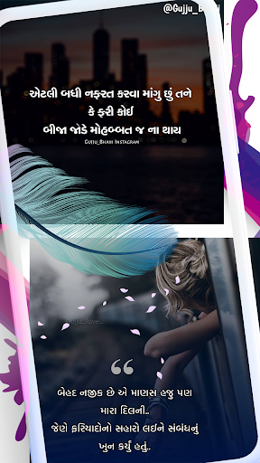 • Attractive UI that helps you to find your quote and images easily available in gujarati status