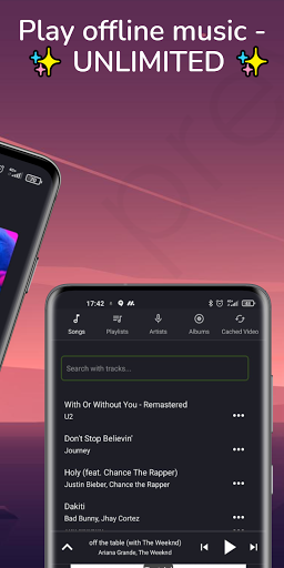 - You can cache all music in [Free Music] for free, and play offline without WIFI.