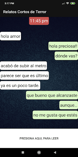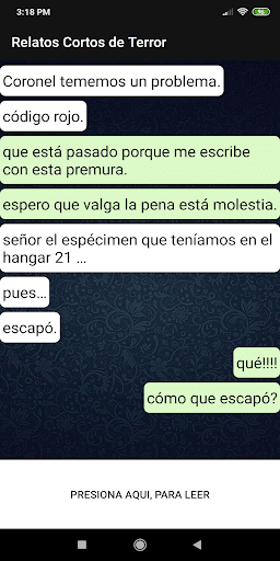 এই চমৎকার অ্যাপ্লিকেশনের সাথে আপনি সন্ত্রাসের চ্যাট ইতিহাস পড়তে পারেন।যেখানে আপনি সেরা ভয়াবহ গল্প লিখুন।
