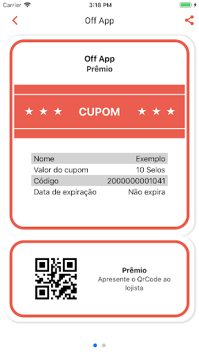 Outra forma de dar o selo ou validar o cupom do seu cliente é utilizando o seu leitor de código de barras e validar o selo diretamente no site www.offapp.net.