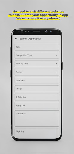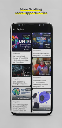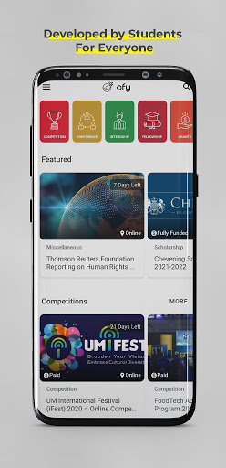 OFY! That one-stop for all your hunt related to upcoming opportunities from latest Competitions to Conferences, Internships, Fellowships, Grants, Scholarships and Workshops from around the globe. This app will bring you all the information over the latest opportunities in a very simplified manner to accommodate you with the efficiency to prepare your applications systematically.