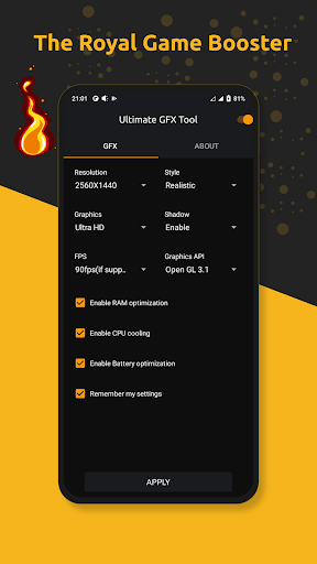 Optimize game configuration for maximum gaming experience with royal game booster - GFX tool!