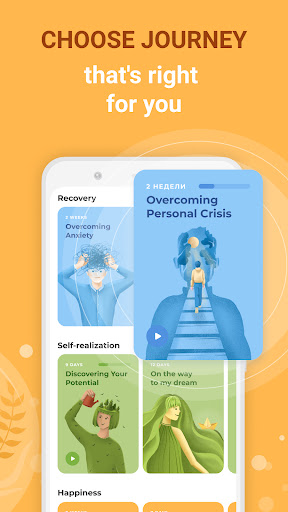 Our application will help you overcome stress, reduce anxiety, increase self-esteem and motivation, get through a personal crisis, improve the quality of your relationships, and practice self-care.