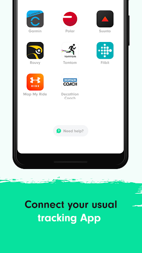 Connect your favorite bike application (Garmin, Strava, Nike Run Club, Runkeeper, Fitbit...) or your GPS watch (TomTom, Garmin, Suunto or Polar).