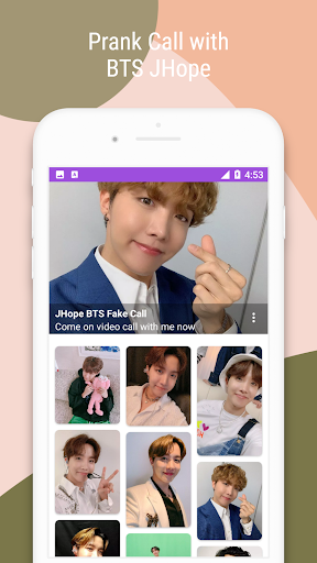 With this application you can make prank video calls with J-Hope BTS like real. In this application there is a setting to set the time when the fake call application with J-Hope BTS is run. This prank call application with J-Hope BTS is designed with a simple, elegant and modern appearance.