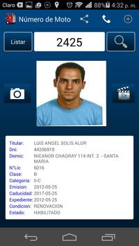 Visualización de Información de los Datos del Vehículo Menor, asi como los datos del conductor y so fotografía.