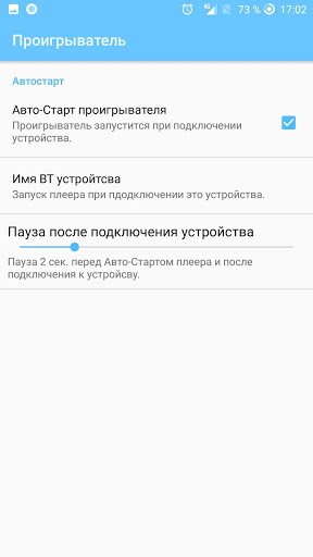 • Automatische Einführung des Players beim Anschließen an ein bestimmtes Bluetooth-Gerät, dies Mit der Funktion können Sie ein Smartphone als Audioquelle zum Beispiel verwenden, um die Lieblingsradiosender in einem Auto zu hören oder sofort die Wiedergabe einzuschalten, wenn Sie Ihr Bluetooth-Headset tragen.
