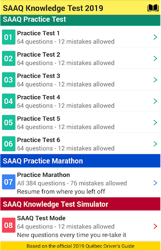 - New questions every time: random questions and answers every time you restart a Québec Knowledge Test.