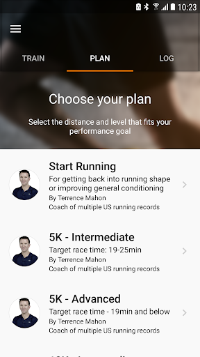 - Training plans for a variety of distances created by elite professional coaches: Start Running, 5K, 10K, and Marathon