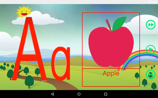 * Kids learn alphabet with sample words.