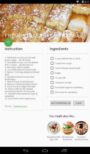 All recipes are described in two sections: Ingredients and Directions; Easy as that! Cooking doesn’t have to be complicated and we help you to prepare some awesome breakfasts.