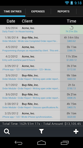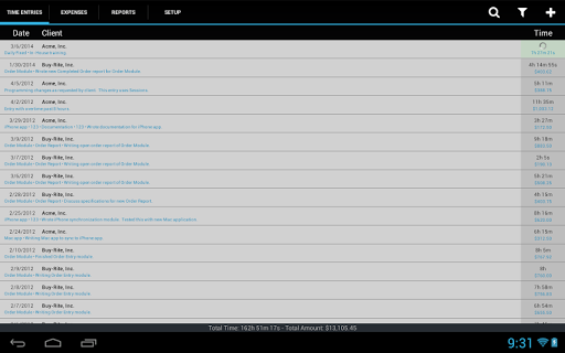 - Time Entries are by Client and can be sub-categorized by Project, Task and/or Category
