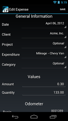 - Track Expenses - from Mileage to Meals to Burning CD's and anything else you want to define