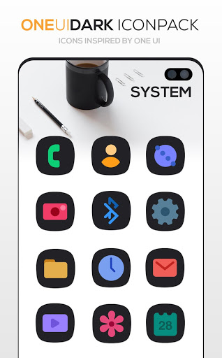 OneUI Dark Icon pack is Darker Version of the Original ONE UI Icon Pack. Check more apps from developer for stock version of One UI Icons.