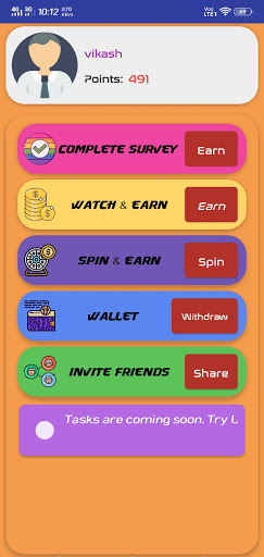 This App lets users Complete simple Survey and for what users are get paid