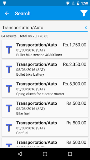 - Search - search all your expenses in one view using keywords like category name, amount, date etc.