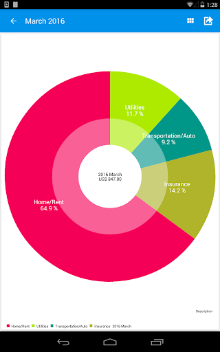 - View current month expenses in one view. See the topmost expense categories sorted in descending order.