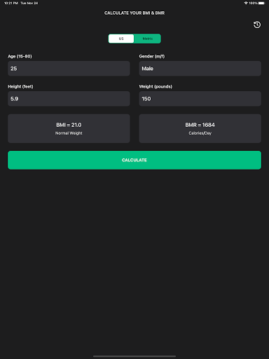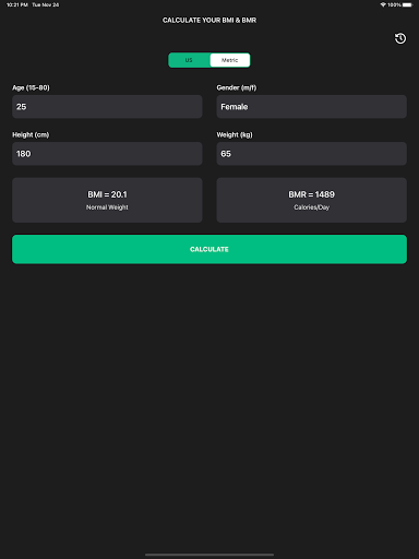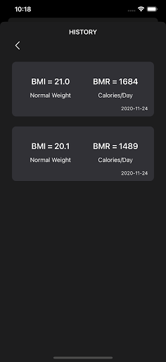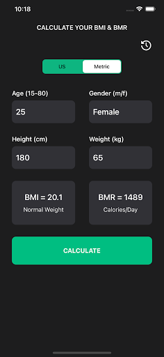 This app is a simple app and it will let you calculate your BMI & BMR. * US (Imperial) and metric units are supported. * Record your BMI & BMR history