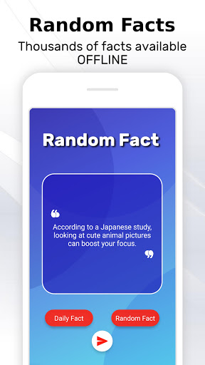 With "One Fact A Day", get a new original fun fact every day! The daily fact is updated every day at noon. All OFFLINE.