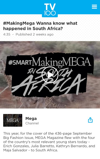 TV 100 is a FREE streaming app that offers a selection of fashion, home, travel and lifestyle television shows produced by One Mega Group, the makers of MEGA, The Philippines’ Best Fashion Magazine.