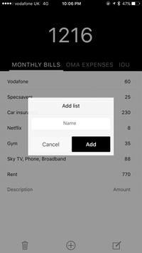Keep track of your monthly bills, expenses or just a list of numbers. Track any total with Totals. Features: • Add multiple lists • Rename lists after creation Totals is free to use forever.