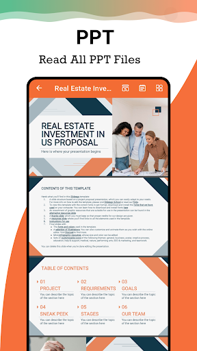 - Open and view PowerPoint presentations (PPT, PPTX) with high resolution and fast performance.
