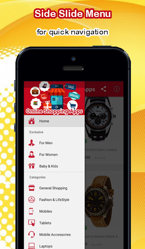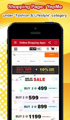 Below are the Categories listed on Online Shopping Apps:
