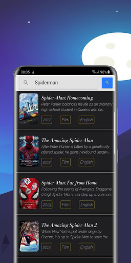 The app contains new and old movies in various languages; English, Spanish, Hindi, Tamil, Russian, etc