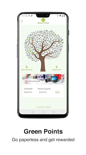 One green point is earned for every two digital receipts. A green point is represented by a green leaf on the tree. On reaching 500 green points, you are eligible to redeem a discount coupon. This feature is location specific.