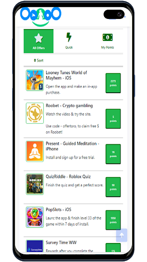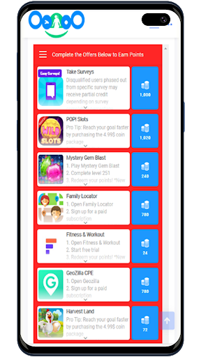 sa website ng Oonoo - Kumita ng mga gantimpala at mga gift card, simpleng scratch card, malutas ang CAPTCHAs at i-on ang wheel ng kapalaran. Upang manalo ng mga gantimpala, kailangan mong makuha ang pinakamaraming bahagi. Kolektahin ang mga piraso habang naglalaro ka upang makuha ang pinakamahusay na premyo, magsagawa lamang ng mga simpleng gawain upang kumita ng mga gantimpala sa paypal at pera. Maaari ka ring gumawa ng pera paypal sa pamamagitan lamang ng pagbubukas ng push notification na kasalukuyang nagpapadala kami ng