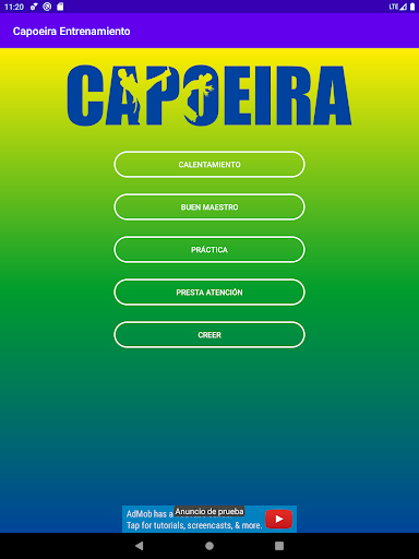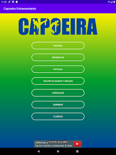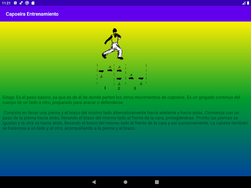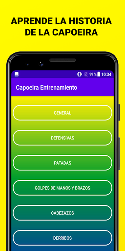 The app is divided into several sections. First you will find a section where we give a review of the history of this martial art, so you can learn what are the beginnings of the martial art Caopeira, and learn the basic teachings, as it is not a simple martial art, but a movement that comes from far away.