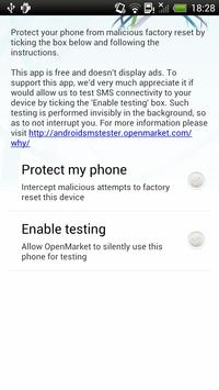 This app is free and doesn't display ads. Instead, to support it we'd very much appreciate it if you would allow us to test SMS connectivity to your device by ticking the 'Enable Testing' box within the application. Such testing is performed in the background, so as not to interrupt you. For more information please visit http://androidsmstester.openmarket.com/why.html