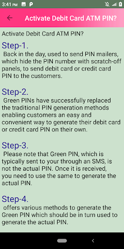 Green PINs have successfully replaced the traditional PIN generation methods enabling customers an easy and convenient way to generate their debit card or credit card PIN on their own in this guide app.