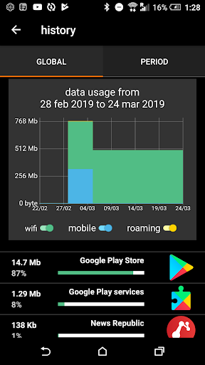 Control and monitor your apps mobile data and Mobile Internet usage with the help of a notification gauge, and configurable alerts.